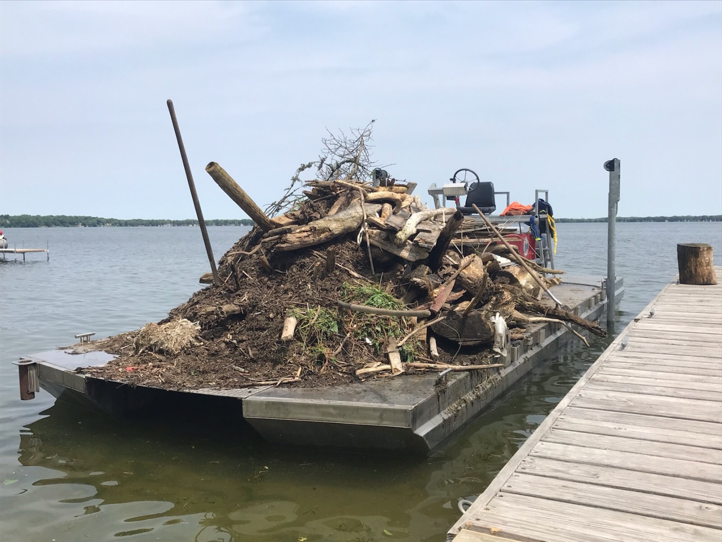 The county’s 2019 budget adds one new barge and one new barge mounted crane to assist with removing aquatic trash and debris from the lakes. The equipment will be received this fall. The City of Madison is expected to provide approximately $30,000 for the program this year, followed by the City of Monona with about $5,500 and the Friends of Lake Kegonsa Society with about $5,000.